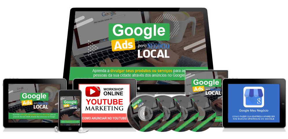 É um curso em vídeo aulas ensinando você a criar anúncios para colocar sua empresa nos primeiros resultados de pesquisa do Google. Quando as pessoas da sua cidade pesquisarem por produtos ou serviços que você tem, vão encontrar sua empresa logo de primeira, deixando os seus concorrentes para trás.